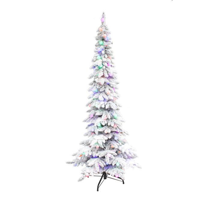 9 Foot King Flock Slim Artificial Christmas Tree 700 LED ...